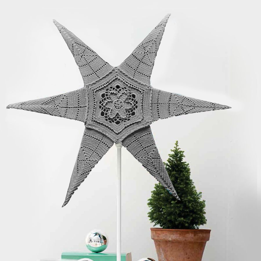 In het pakket zit: patroon, 4 x bol haakkatoen, DIY ster-frame met bouwinstructies, staand armatuur met lichtknopje en stekker, 2 multiplex montage cirkels, 4 kleine haakjes.